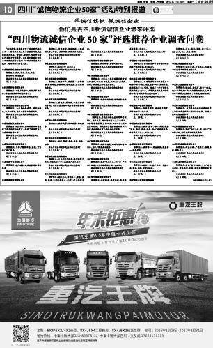 “四川物流诚信企业50家”评选推荐企业调查问卷...