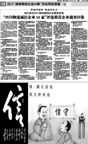 “四川物流诚信企业50家”评选推荐企业调查问卷...