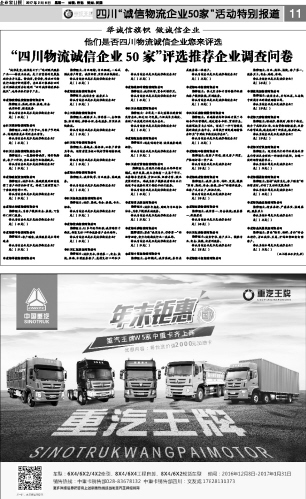 “四川物流诚信企业50家”评选推荐企业调查问卷...