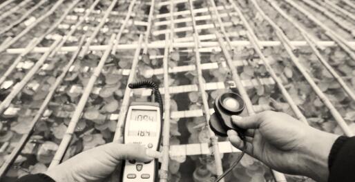 2月28日,在福建泉州南安市石井镇一紫菜苗种厂,图一为工作人员用测光仪监测育苗池区域的光照情况。