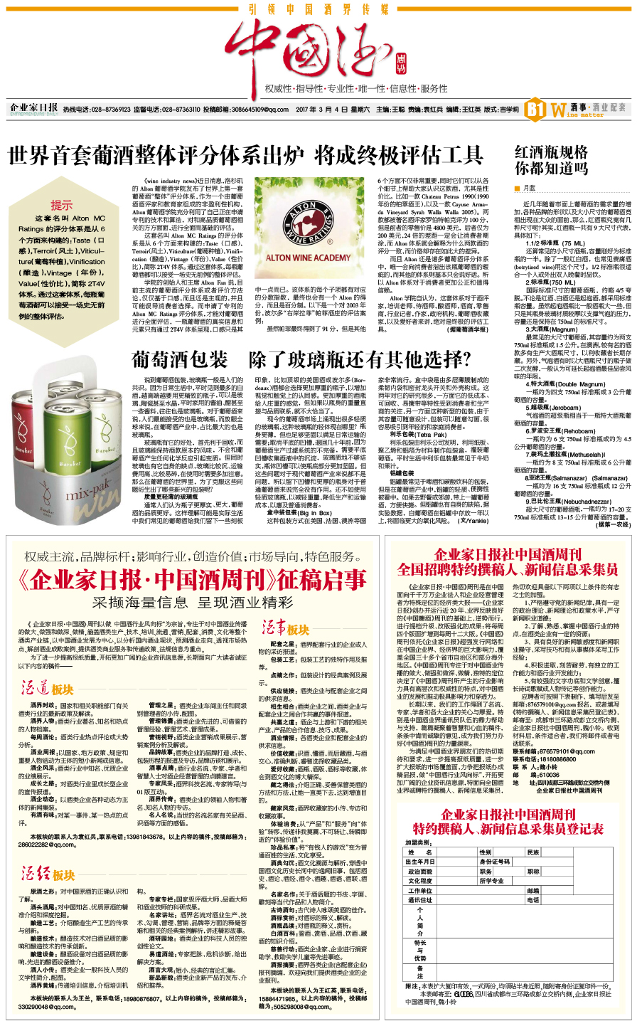 世界首套葡酒整体评分体系出炉 将成终极评估工...