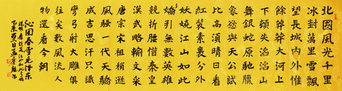 孟广龙老师研习过李斯的小篆,王羲之的佛教遗经,草决歌十七帖王羲之的笔势十二章、孙过庭书谱、淳化阁法帖。还研习过文徽明的金刚经,颜真卿的多宝塔,勤礼碑。研习过甲骨文,散氏盘,毛公顶,张迁碑专攻过智永的千字文,圣教序,欧阳询的九成宫体泉铭录。专攻过隶书、大篆。学习书法痴迷,从而使书法艺术逐渐完美。是广西书法家卢如杰第一期书画培训班学员。在书法名家的指点下,书法艺术更加精湛,从而积极参加国家级书法征文大赛。