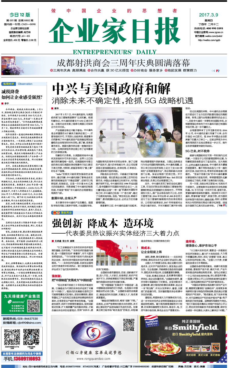 国内统一刊号:CN51—0098 中国•企业家日报