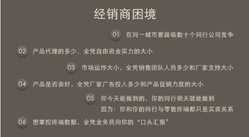 终端零售店多年来靠自己的诚信赢得了在自己“地盘”上的认知,而获取盈利。但互联网的升级,自己却无法实现并改变现状,渴望有一个大的平台来实现这一轮时代变革对自己的升级,从而走出“困境”。