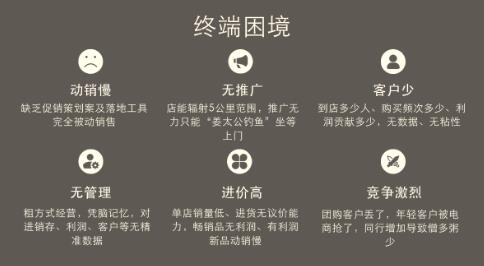 在传统企业于互联网产业升级的浪潮面前,零售终端小微企业不仅要学网、懂网、用网,还要积极融入互联网。当下零售终端面临着自身经营模式的缺陷,无服务、无规范化、无数据化、无精细化、无品牌化,导致用户流失转移,无法形成稳定的客源;面对互联网不知所措,甚至恐慌,无能力实现互联网化升级,更不知道和什么样的互联网平台融合;传统渠道的层层加价模式导致无供应链体系价格优势。在“互联网+”成为社会基础设施时,互联网不再是一个行业,而是一个大时代的变革来临。新建开发区的传统互联网创造不了未来,而线下95%存量完成移动互联网“老城区改造”才是真正的浪潮!