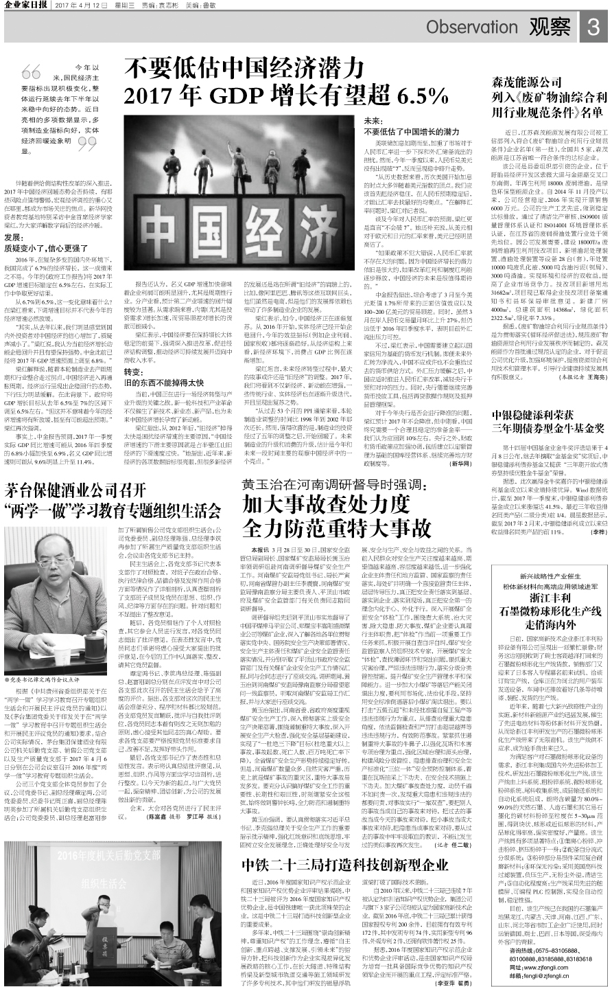 国内统一刊号:CN51—0098 中国•企业家日报