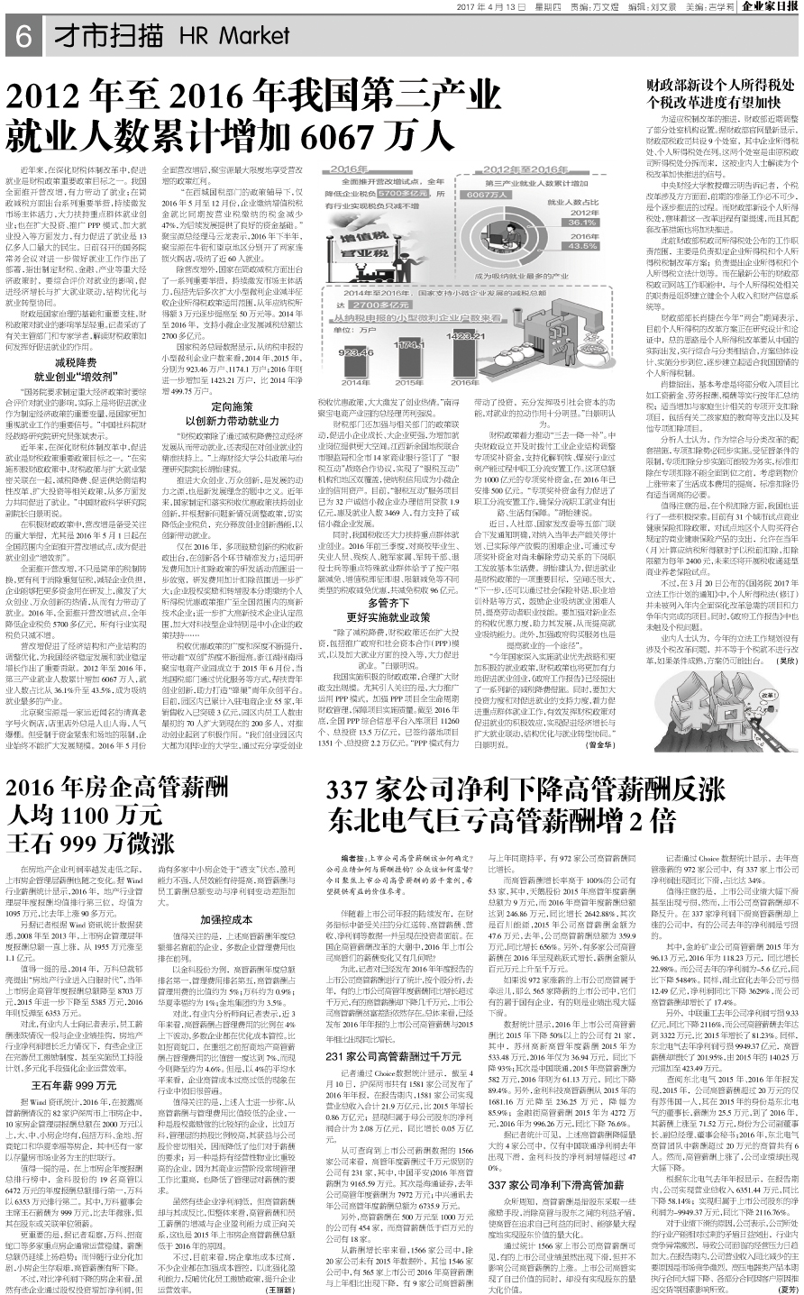 2012年至2016年我国第三产业 就业人数累计增加6...