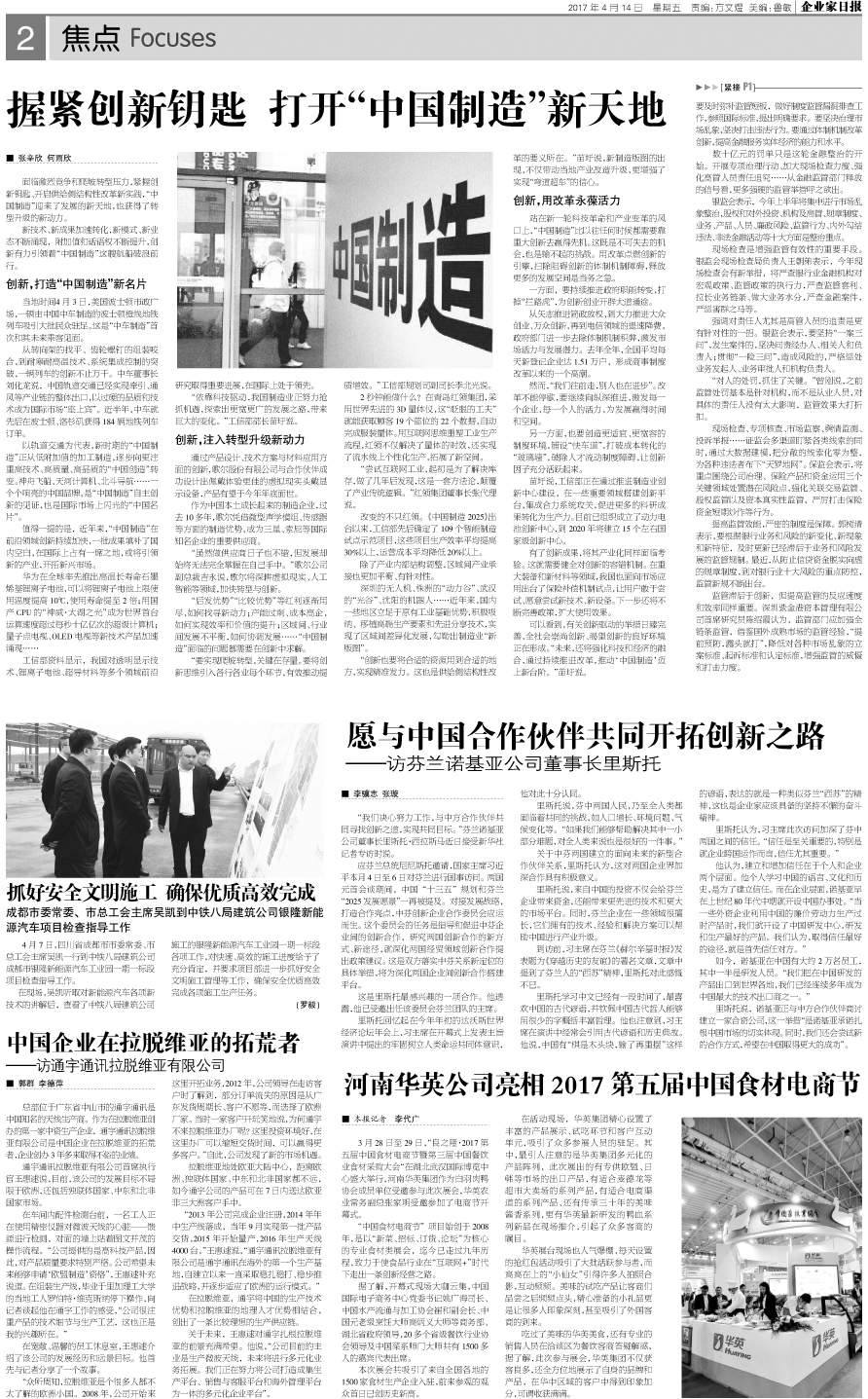 愿与中国合作伙伴共同开拓创新之路...