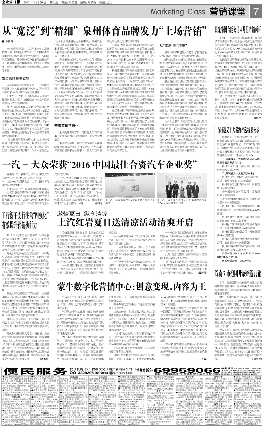 国内统一刊号:CN51—0098 中国•企业家日报
