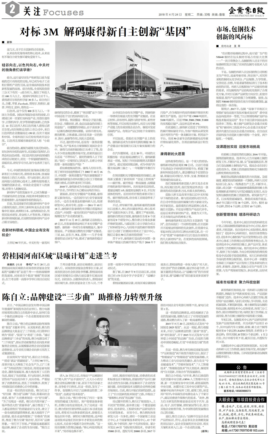 对标3M 解码康得新自主创新“基因”...