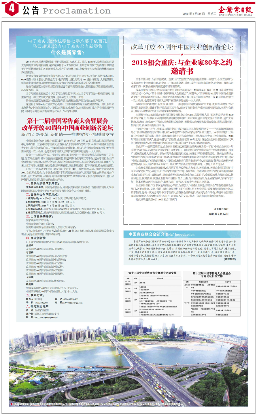 国内统一刊号:CN51—0098 中国•企业家日报