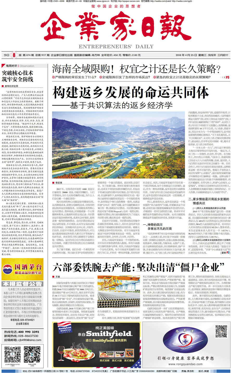国内统一刊号:CN51—0098 中国•企业家日报