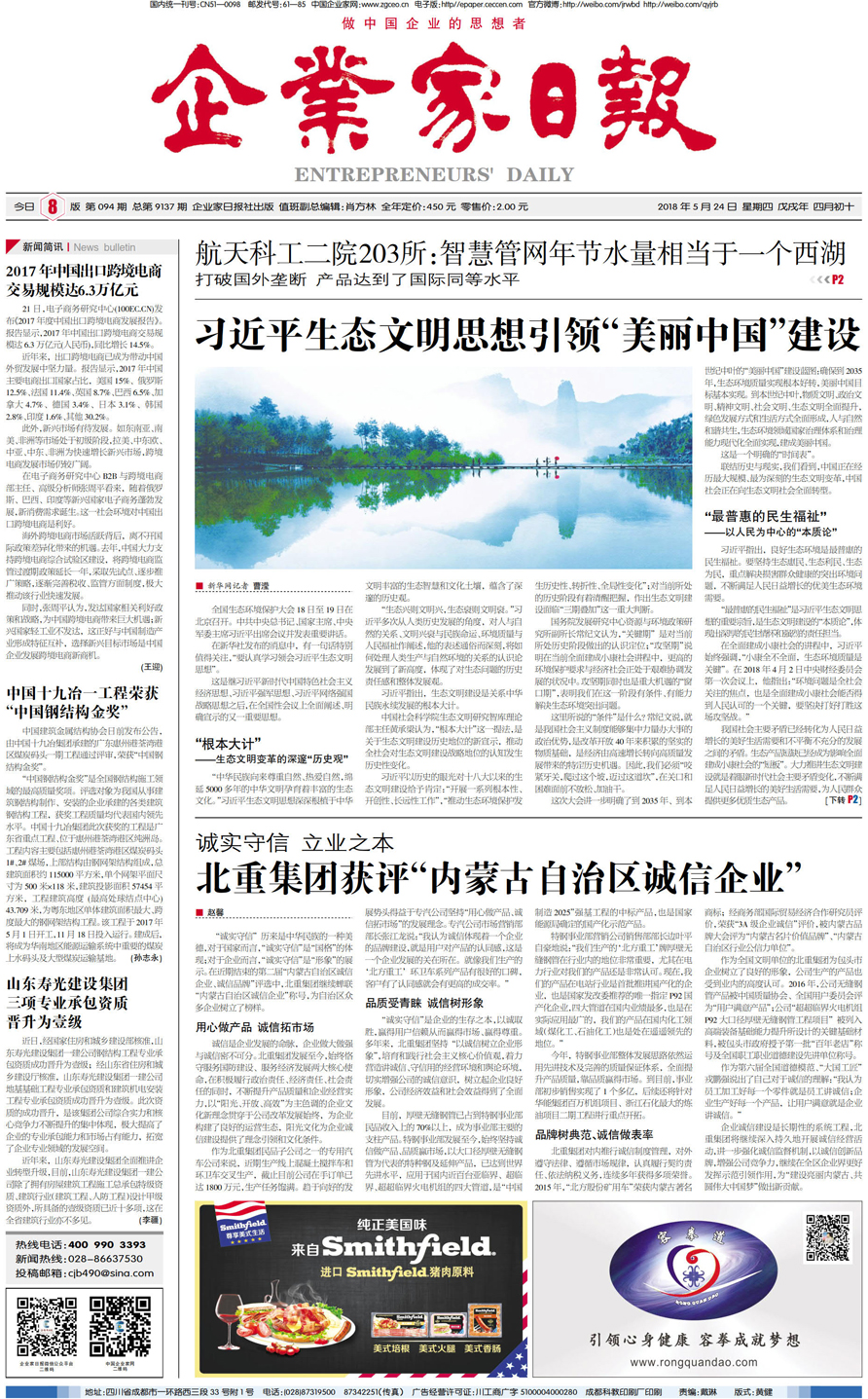 诚实守信 立业之本 北重集团获评“内蒙古自治区...