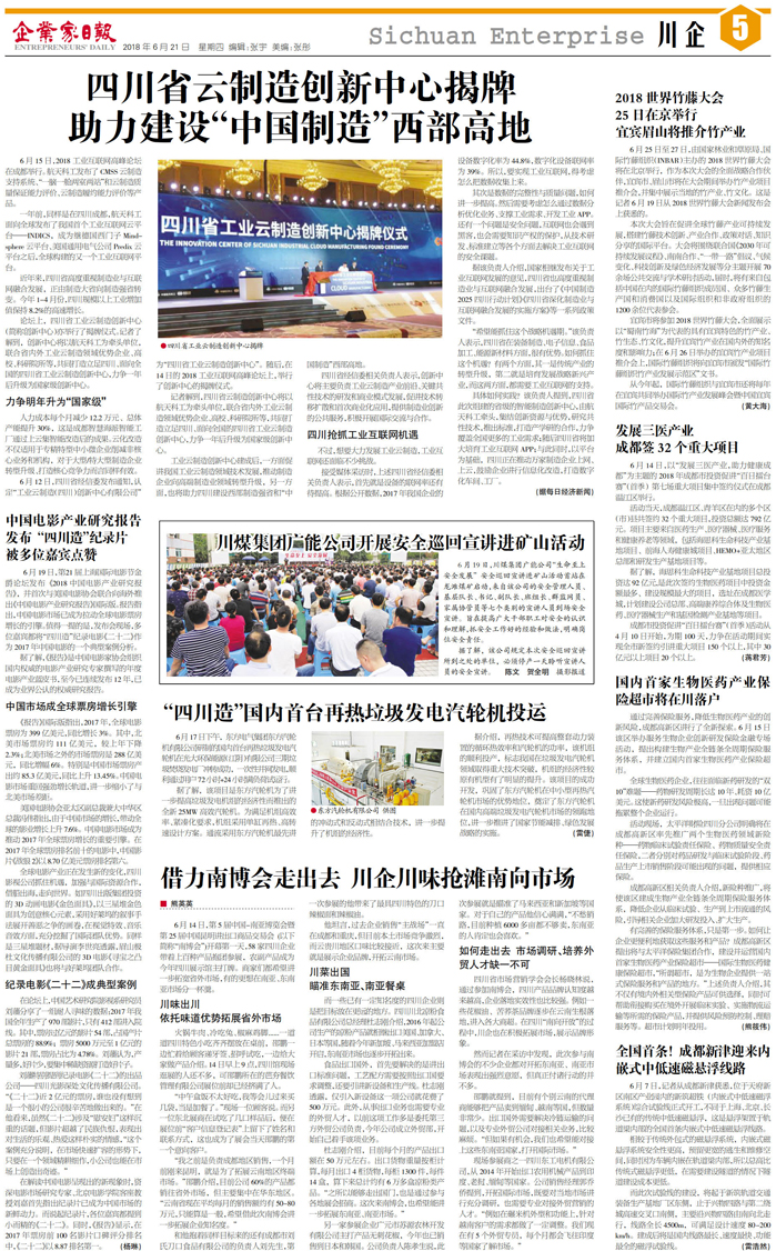 国内统一刊号:CN51—0098 中国•企业家日报