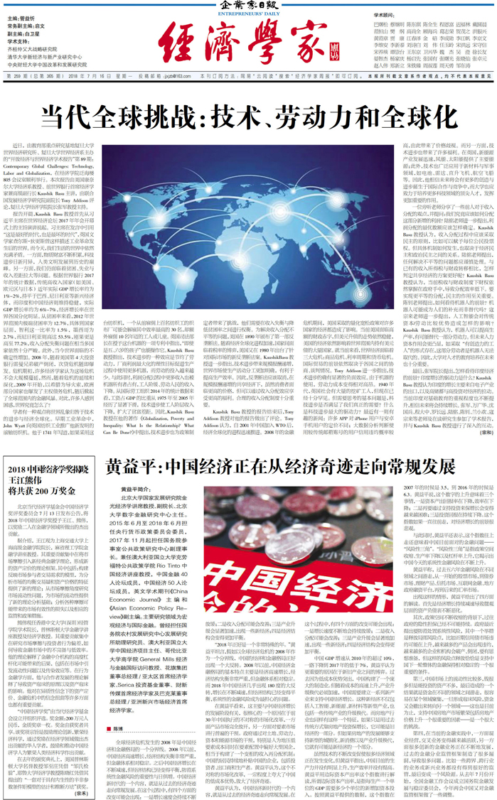 黄益平:中国经济正在从经济奇迹走向常规发展...