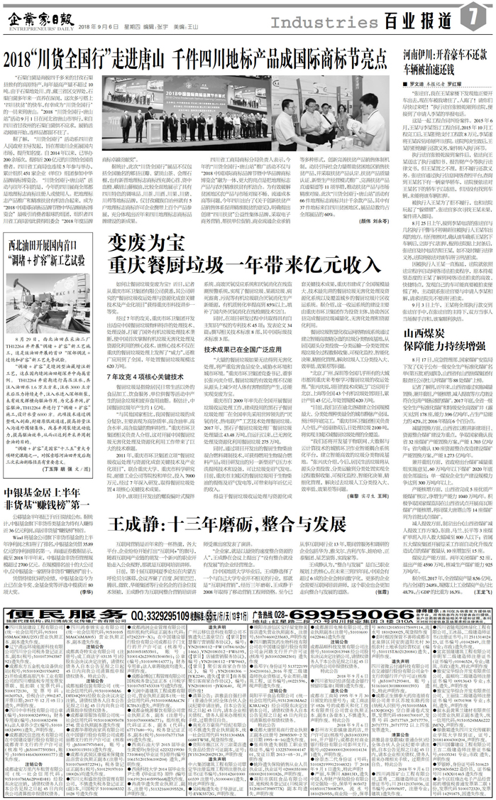 国内统一刊号:CN51—0098 中国•企业家日报