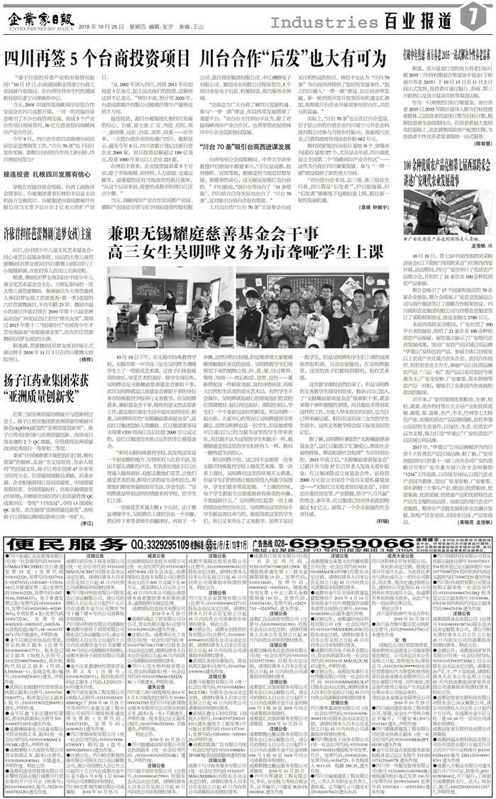 国内统一刊号:CN51—0098 中国•企业家日报
