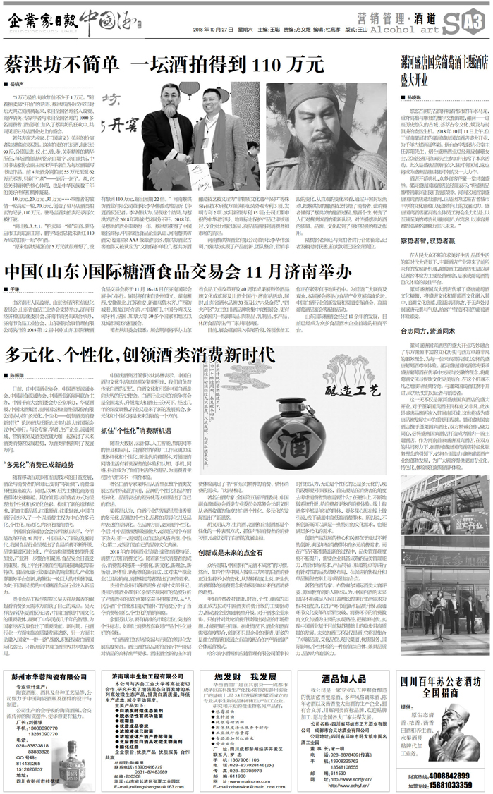 蔡洪坊不简单 一坛酒拍得到110万元...