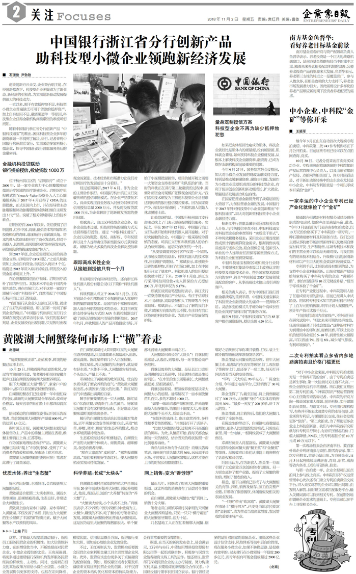 中国银行浙江省分行创新产品 助科技型小微企业...