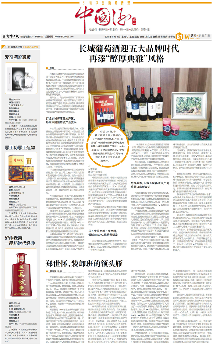长城葡萄酒迎五大品牌时代 再添“醇厚典雅”风...