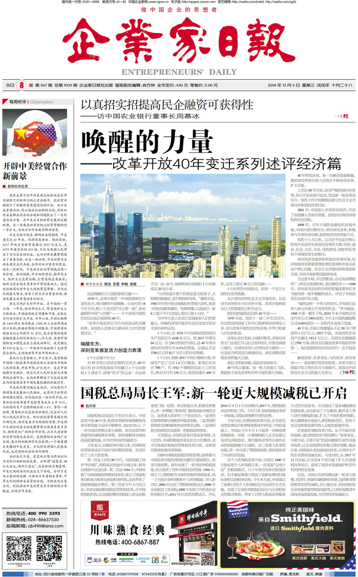 唤醒的力量 ——改革开放40年变迁系列述评经济...