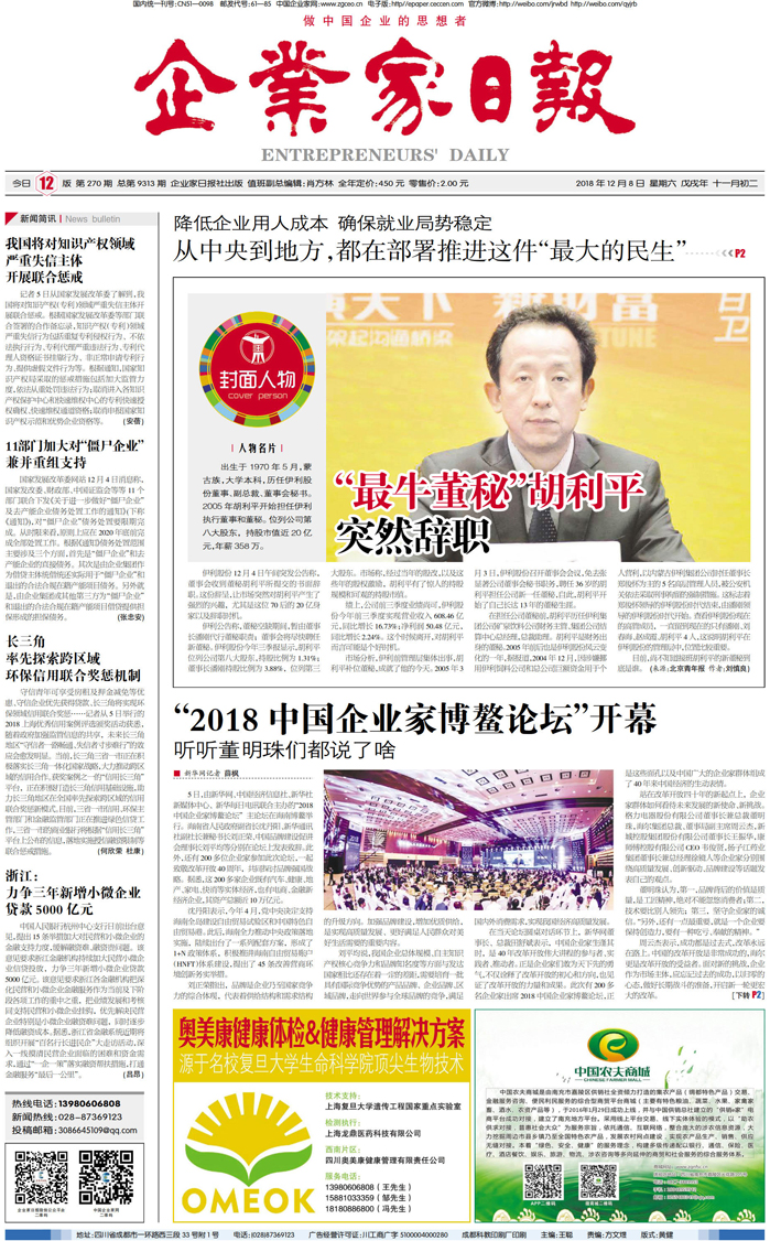 欢迎关注企业家日报多媒体报刊!
