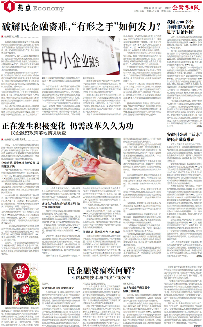 民企融资痼疾何解? 业内称需技术与制度平衡发...