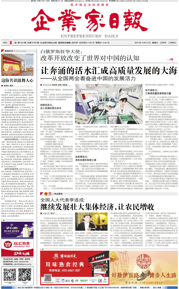 国内统一刊号:CN51—0098 中国•企业家日报