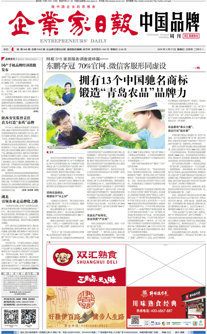拥有13个中国驰名商标 锻造“青岛农品”品牌力...