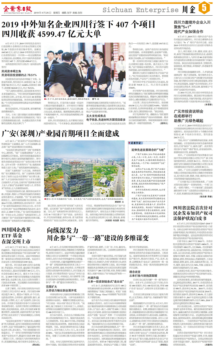 2019中外知名企业四川行签下407个项目 四川收获...