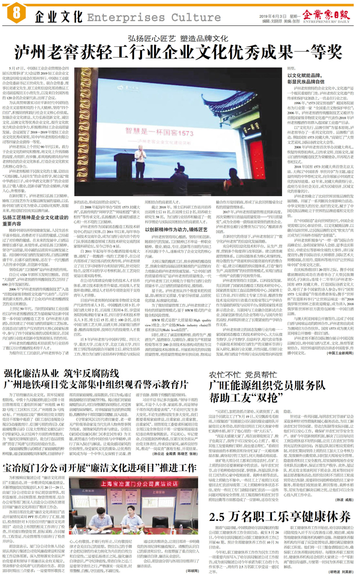 泸州老窖获轻工行业企业文化优秀成果一等奖...