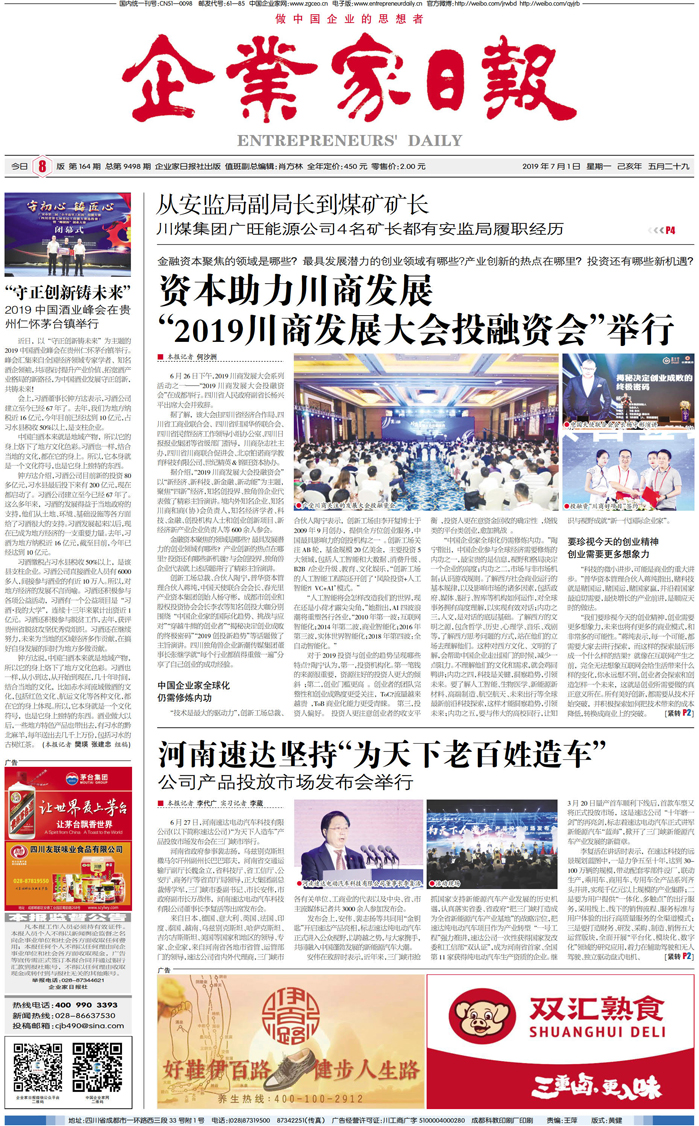 国内统一刊号:CN51—0098 中国•企业家日报