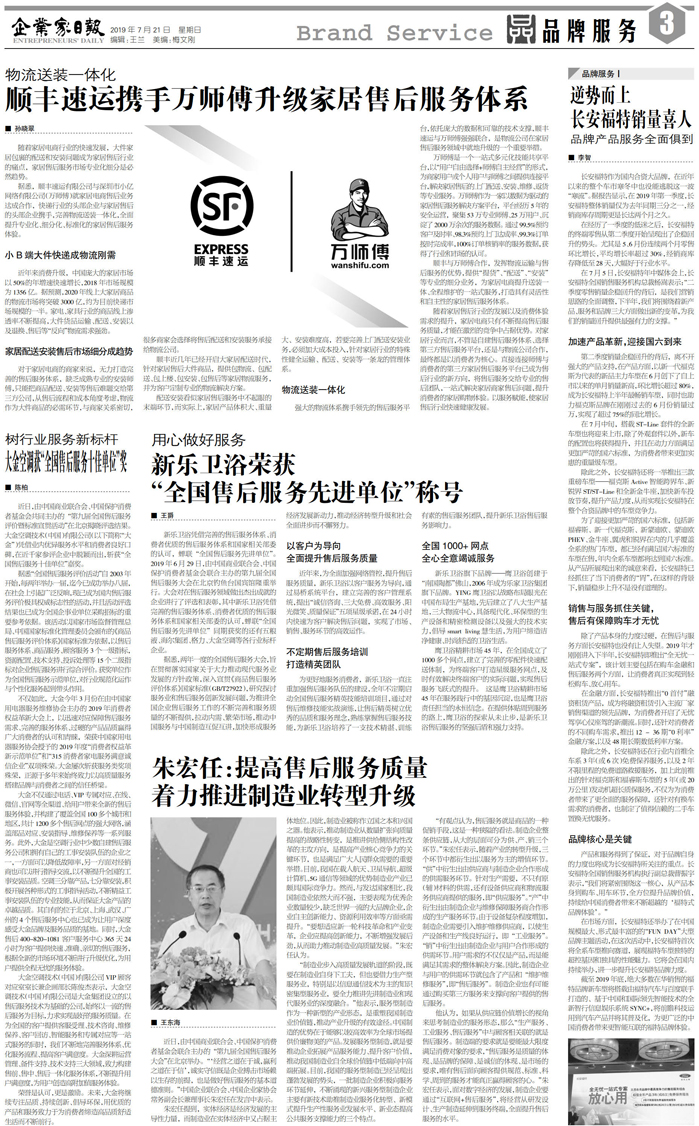 新乐卫浴荣获 “全国售后服务先进单位”称号...