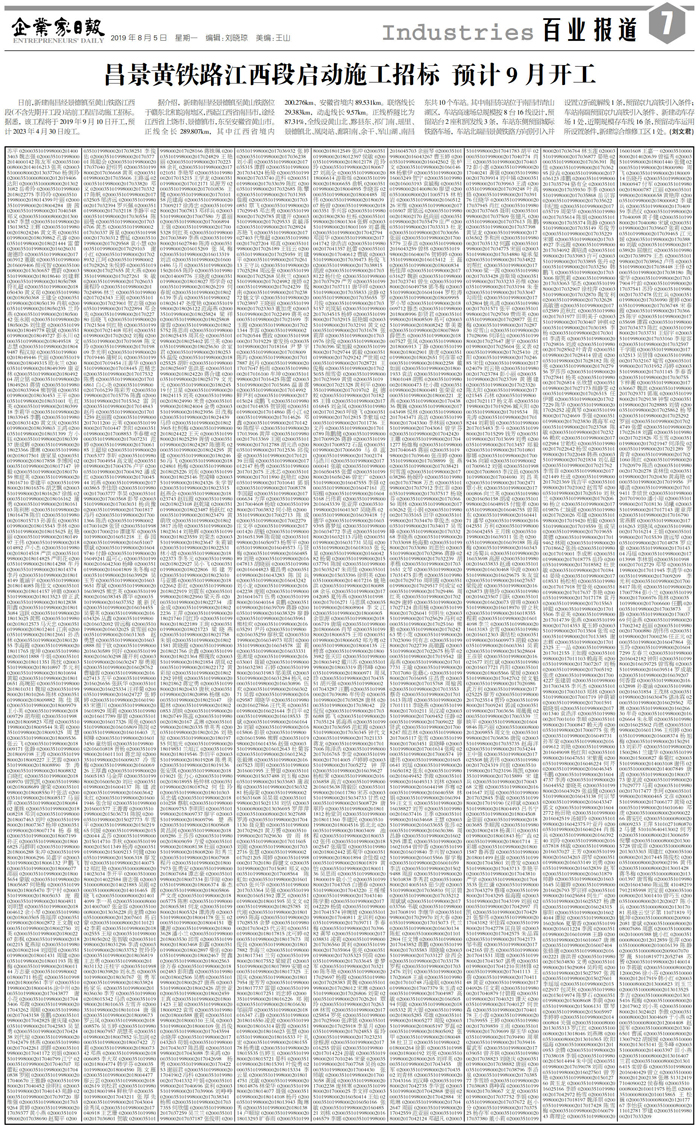昌景黄铁路江西段启动施工招标 预计9月开工...