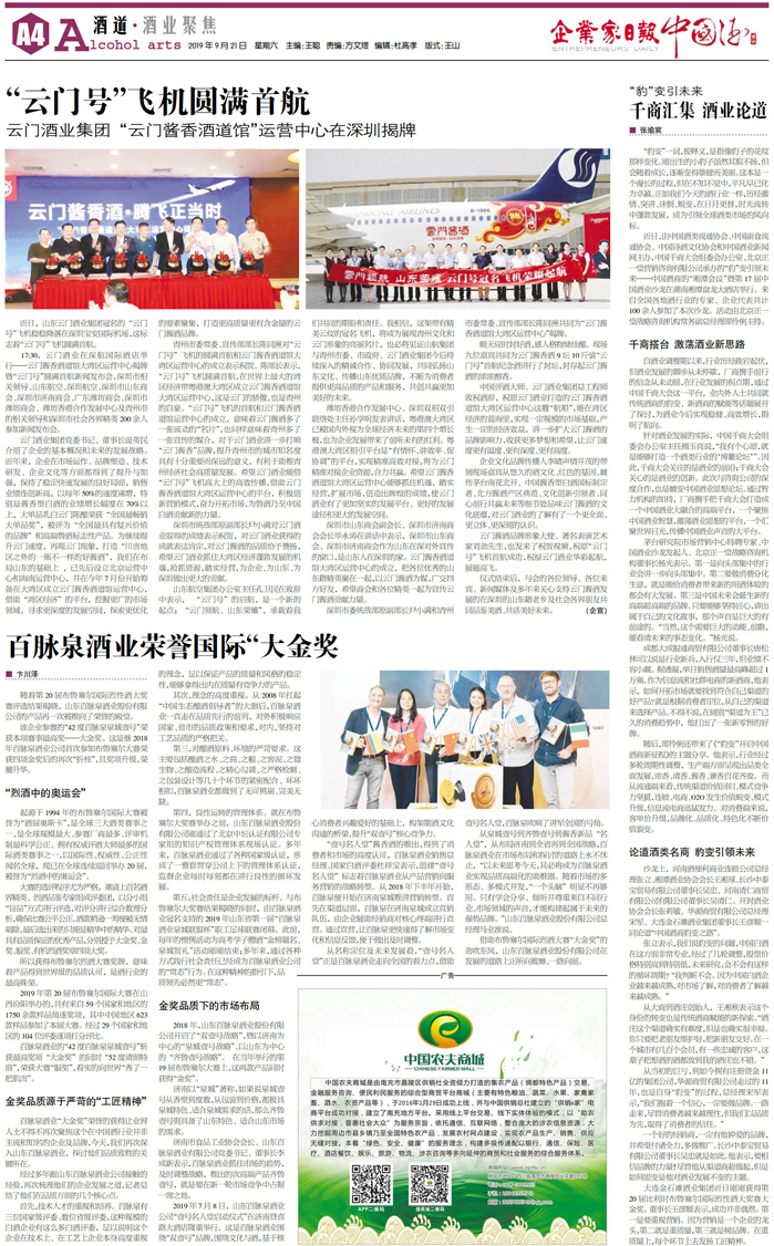 百脉泉酒业荣誉国际“大金奖