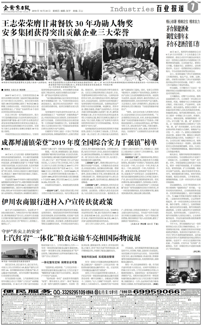 国内统一刊号:CN51—0098 中国•企业家日报