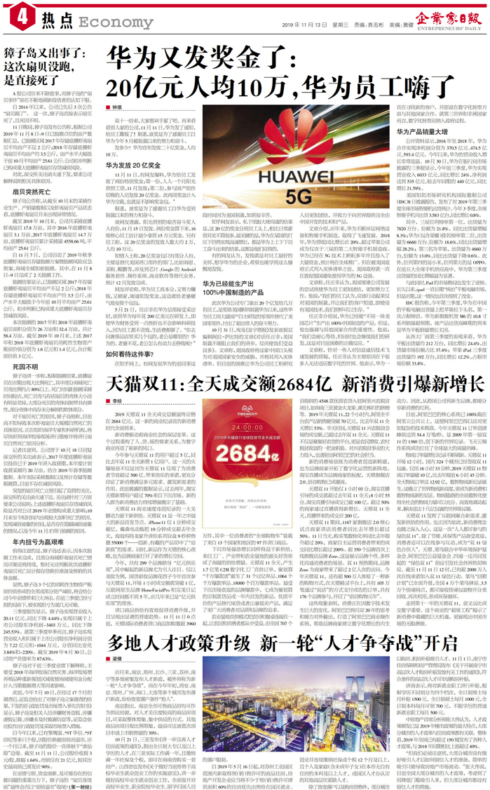 华为又发奖金了: 20亿元人均10万,华为员工嗨...