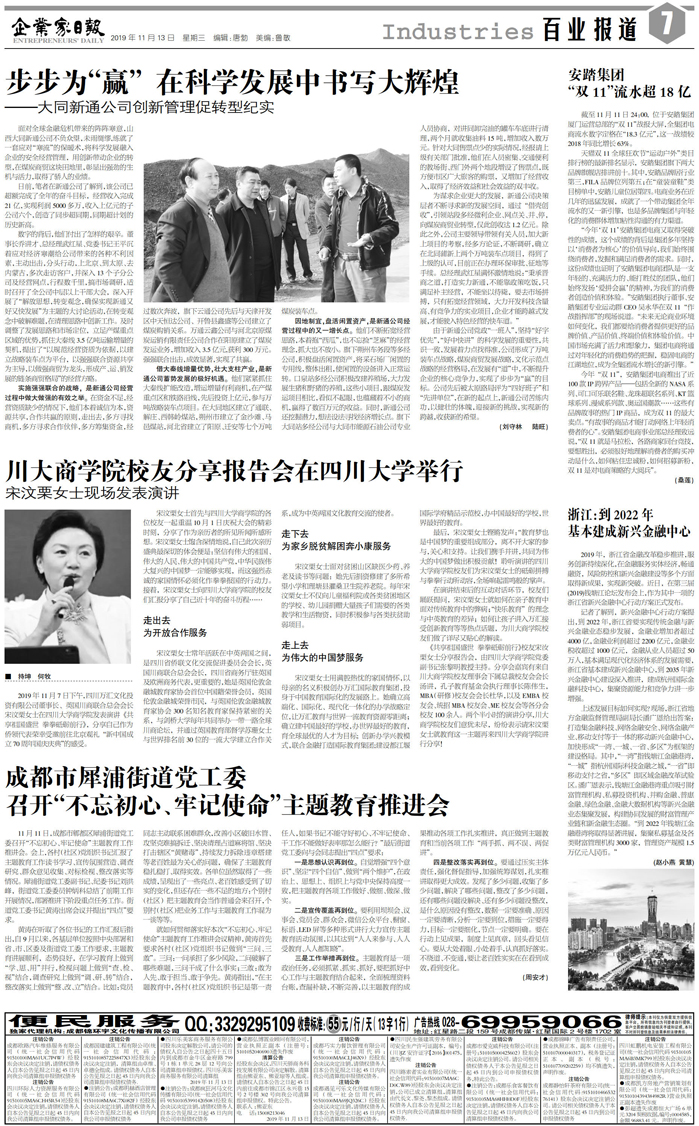 国内统一刊号:CN51—0098 中国•企业家日报