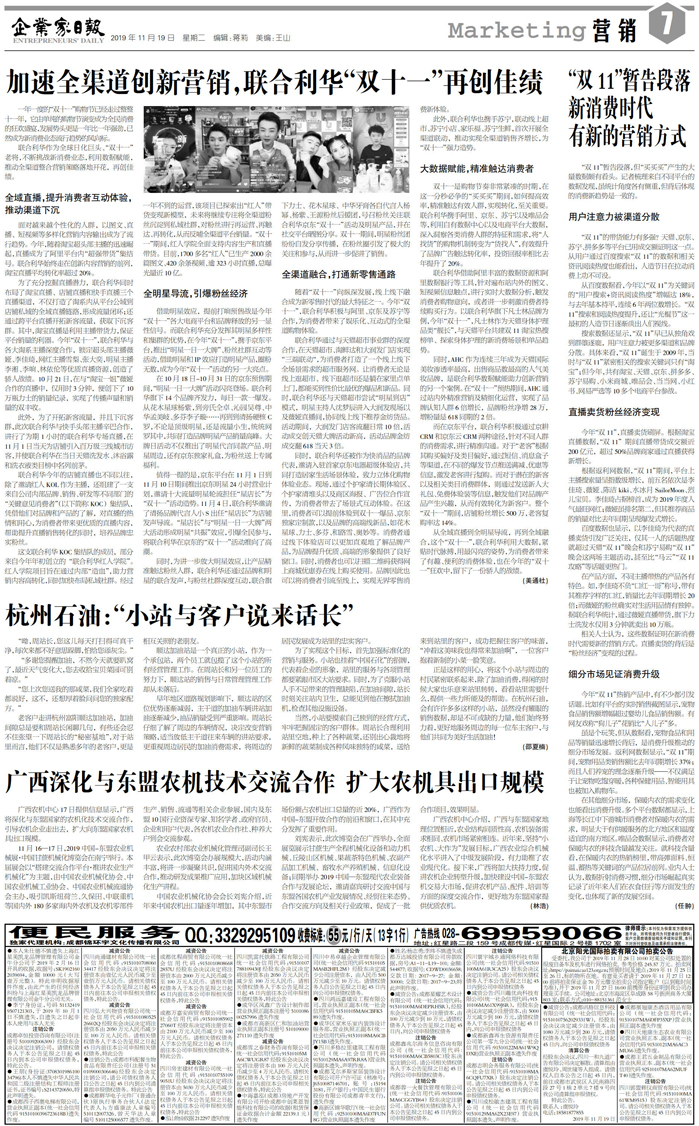 “双11”暂告段落 新消费时代 有新的营销方式...
