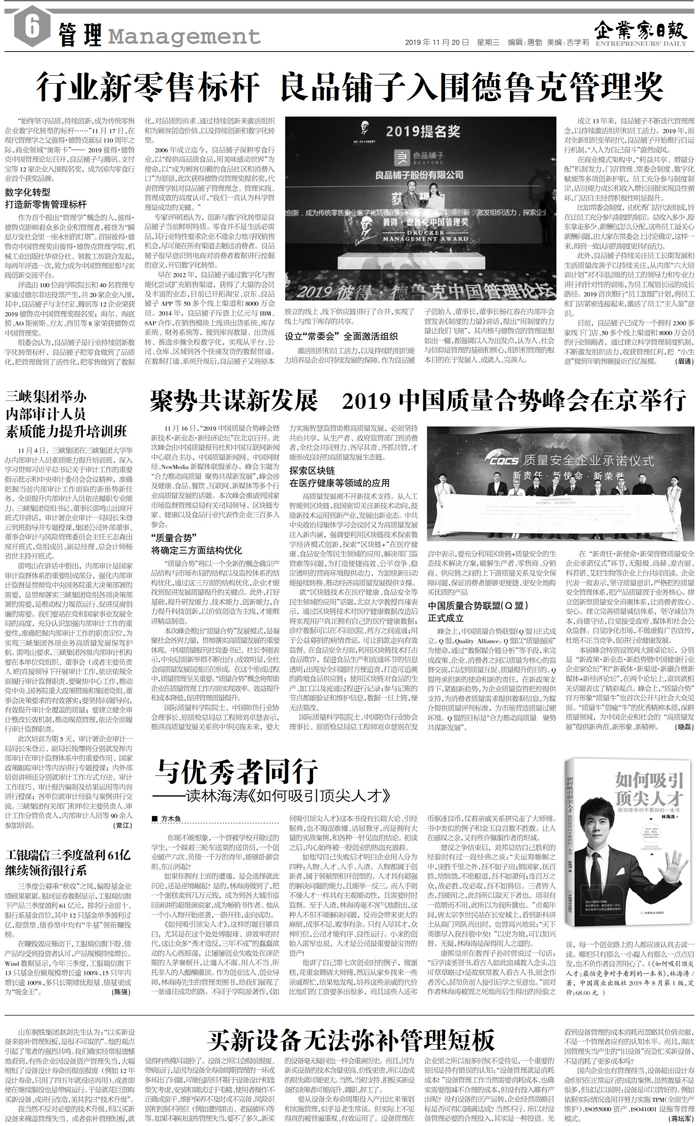 行业新零售标杆 良品铺子入围德鲁克管理奖...