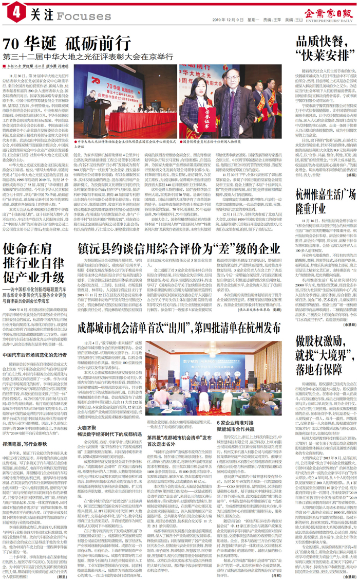 国内统一刊号:CN51—0098 中国•企业家日报