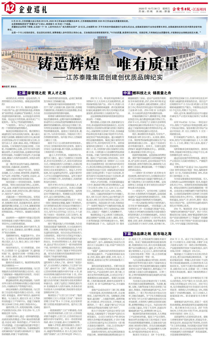 铸造辉煌 唯有质量 ——江苏泰隆集团创建创优质...