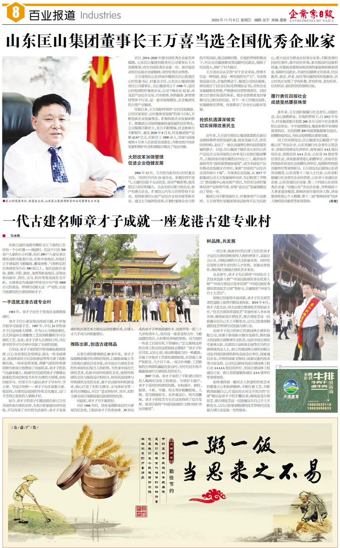 山东匡山集团董事长王万喜当选全国优秀企业家...