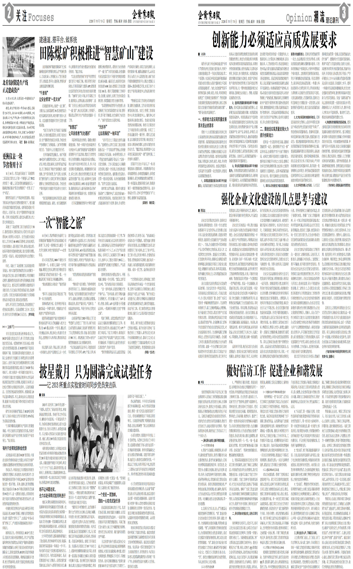 建通道、搭平台、做系统 田陈煤矿积极推进“智...