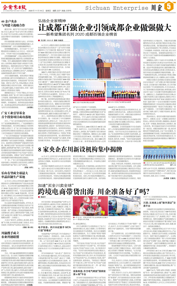 国内统一刊号:CN51—0098 中国•企业家日报