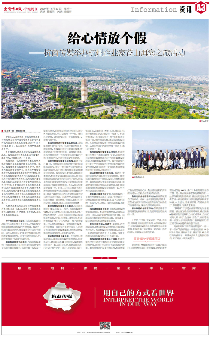 给心情放个假——杭商传媒举办杭州企业家苍山洱...