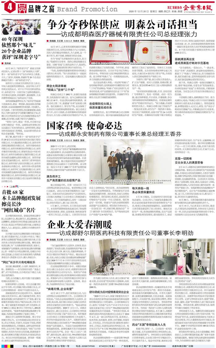 企业大爱春潮暖 ——访成都舒尔阴医药科技有限...
