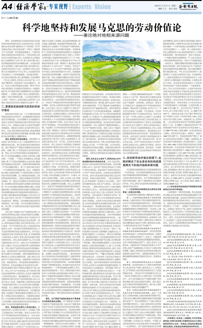 科学地坚持和发展马克思的劳动价值论 ——兼论...