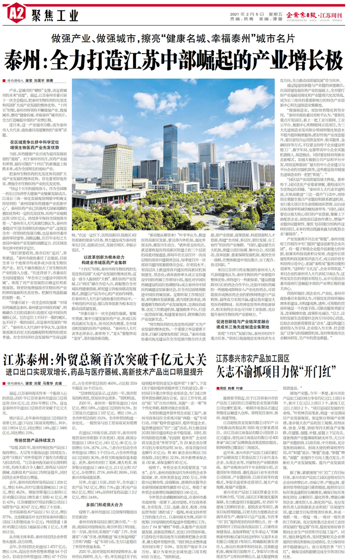 江苏泰兴市农产品加工园区 矢志不渝抓项目力保...