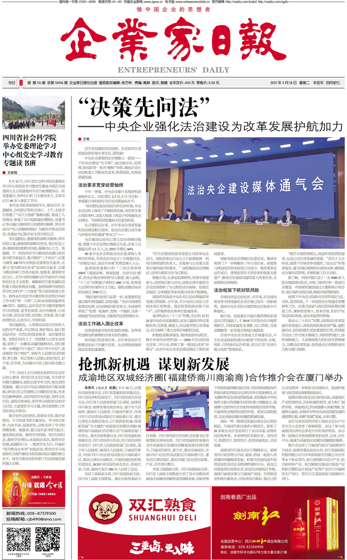 国内统一刊号:CN51—0098 中国•企业家日报